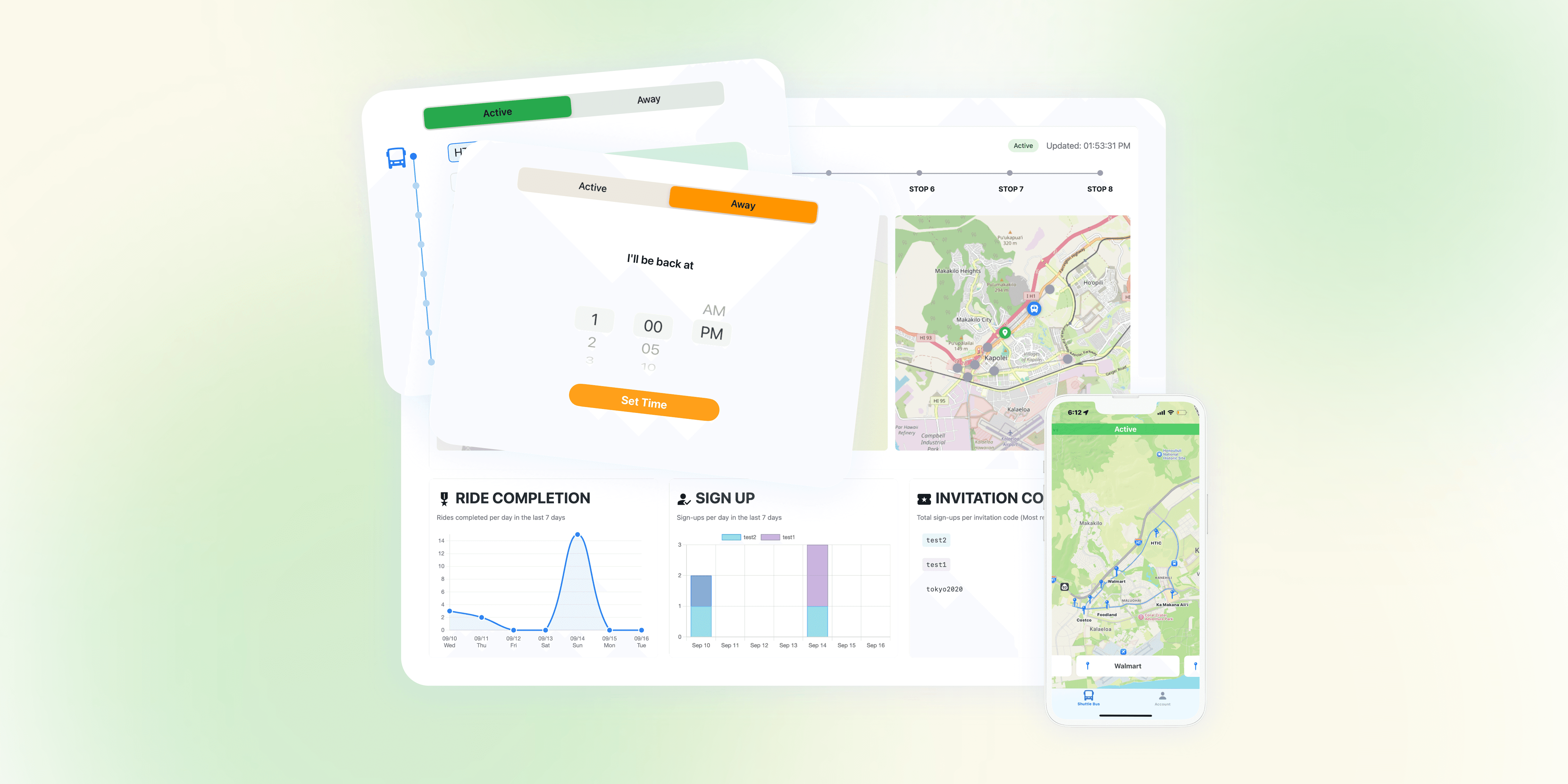 A mobility eco-system designed to coordinate riders, drivers, and operations real-time.