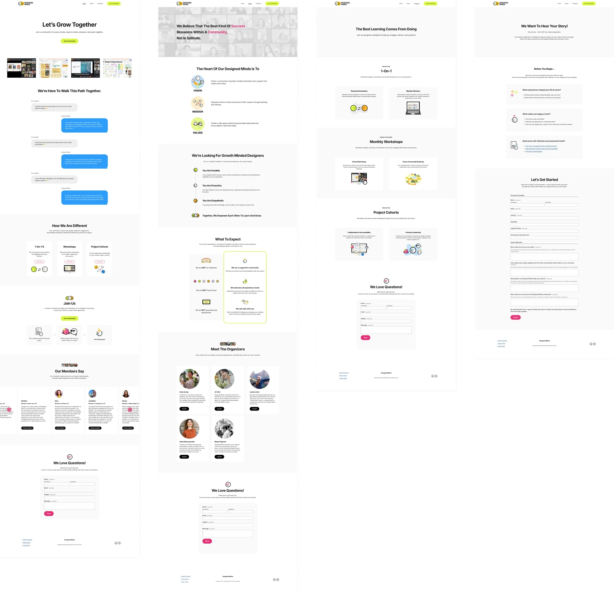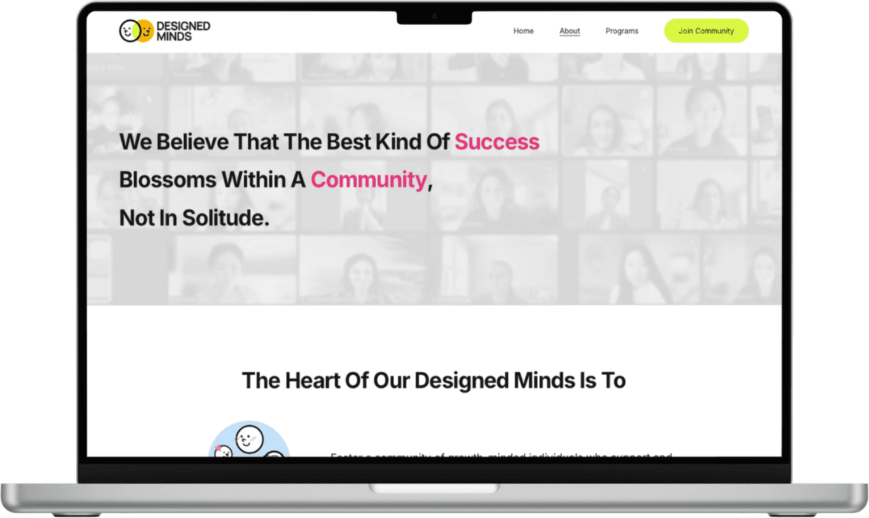 While the original Designed Minds site featured rich content and community-driven initiatives, its core message was getting lost in the clutter. The structure lacked clarity, and the voice didn’t fully reflect the warmth, authenticity, and personality of the community.