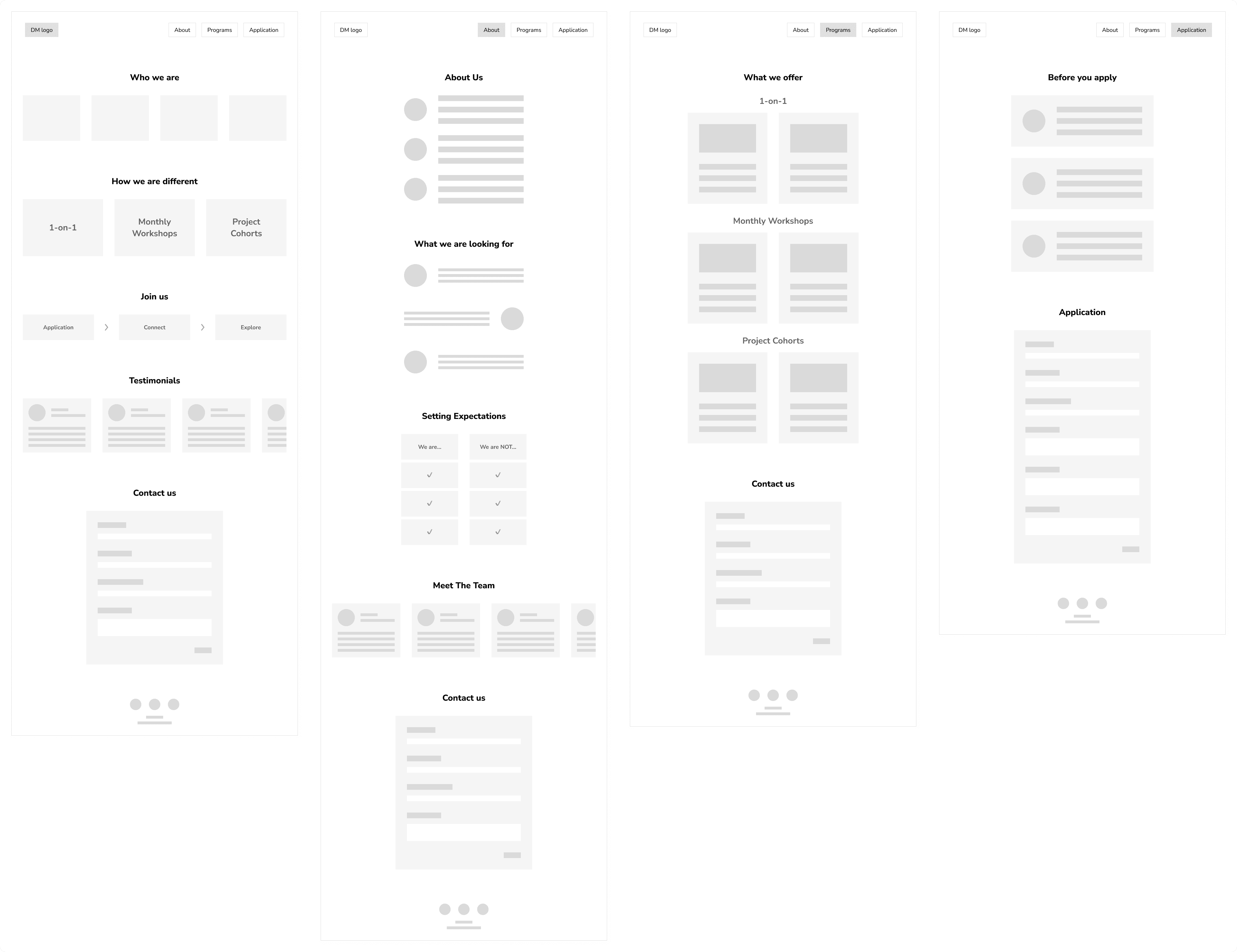 I started with low-fidelity wireframes to establish the core structure and layout of the redesigned website. These initial sketches helped visualize content hierarchy and navigation flow. As the design evolved, I refined them into mid-fidelity wireframes, incorporating clearer interactions and visual emphasis. These were shared with stakeholders to gather feedback, ensuring alignment with the community’s goals before moving into high-fidelity design and final implementation.