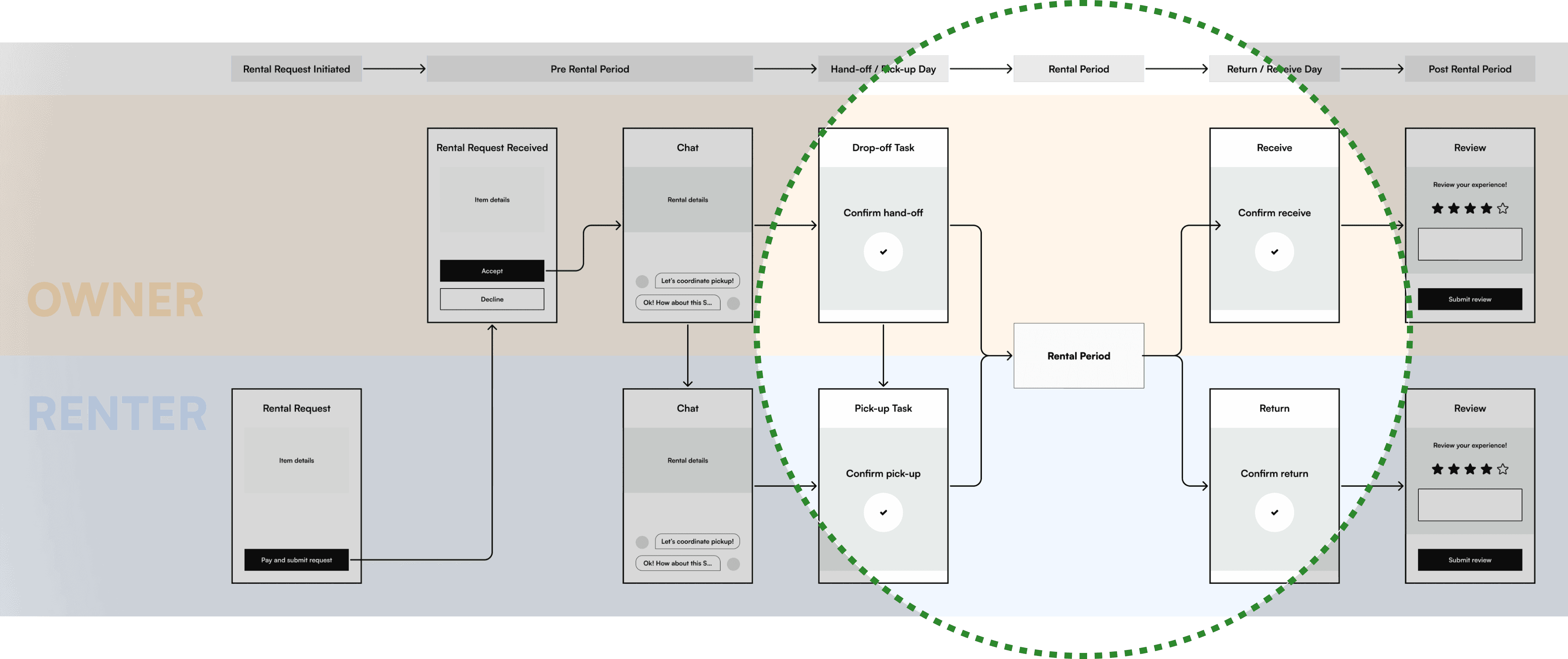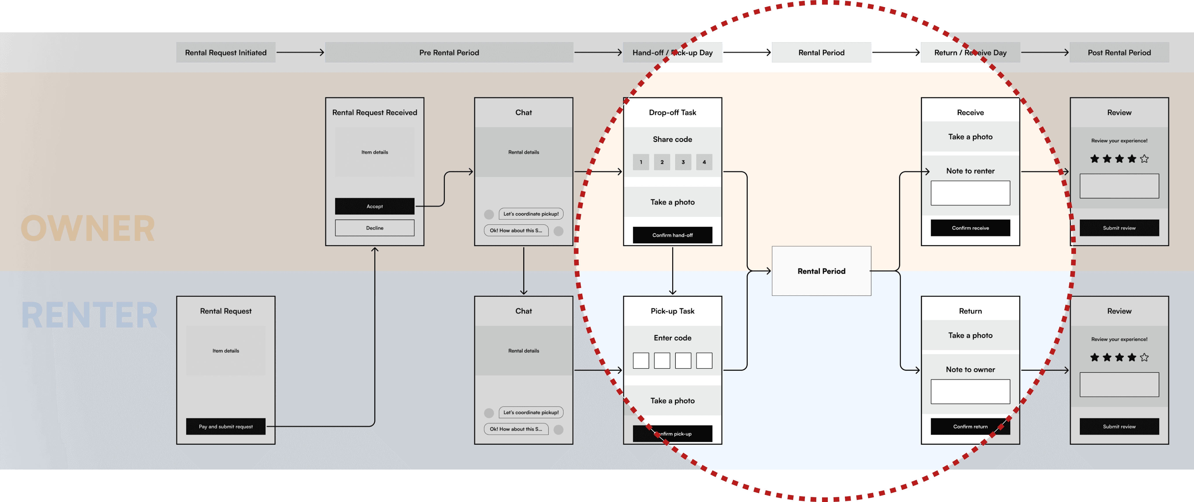 Rather than optimizing individual screens, I stepped back to map renter and owner journeys end to end—tracking how decisions, states, and notifications interacted across time and physical handoff. This reframing shifted the problem from fixing isolated UI to reducing cognitive load across the entire experience.